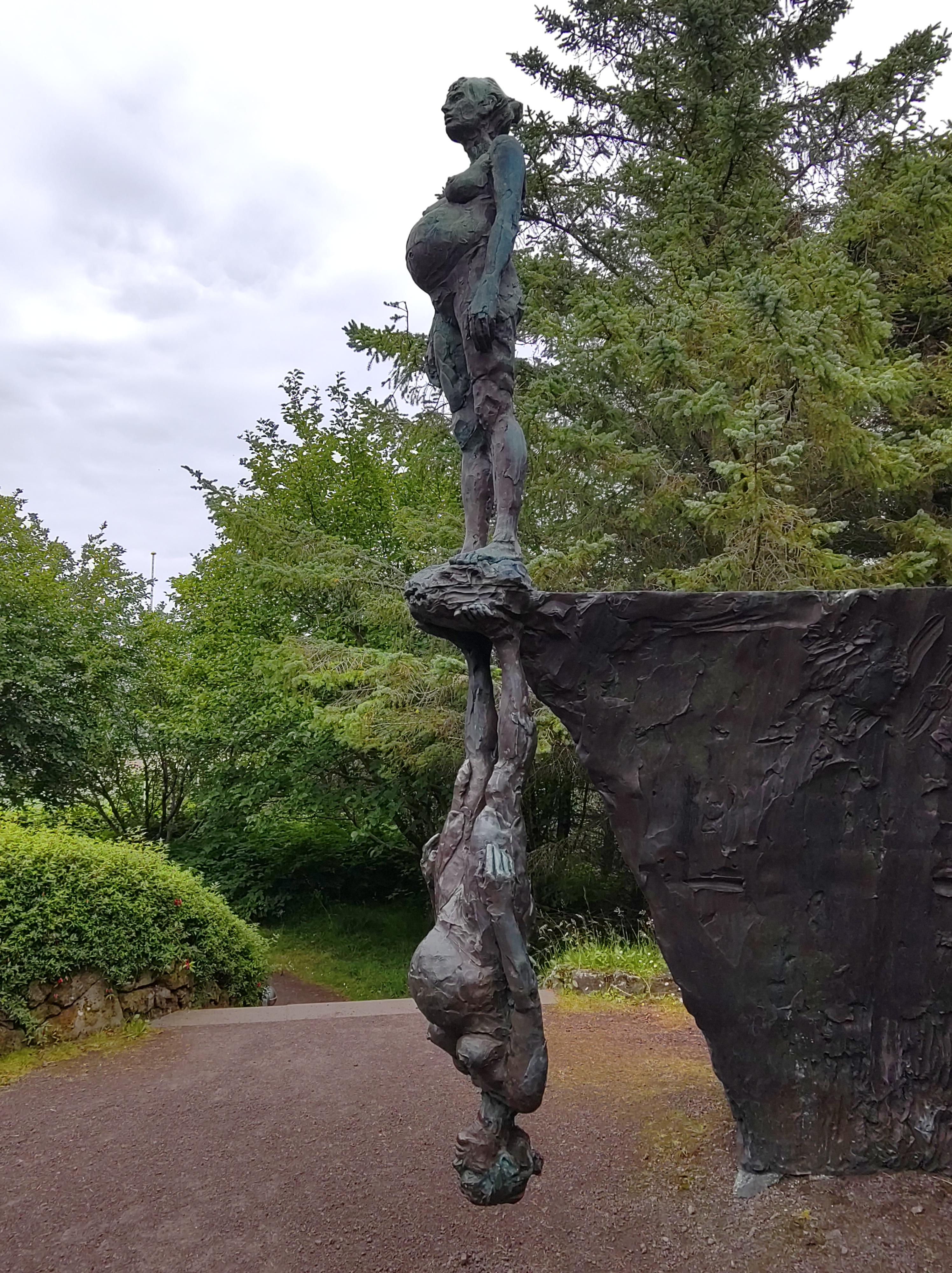 Das Gegenstück dazu: Wie überall auf den Färöer haben auch auf Sandoy die markanten Felsformationen Namen. Oft werden die aus dem Wasser ragenden Felsen als Körperteile von unglücklichen Wesen – Trollen, Riesinnen oder in Steinen lebende Huldra – verstanden, die zwei Inseln zueinander oder gar die Färöer-Inseln nach Island ziehen wollten und dafür bestraft wurden.