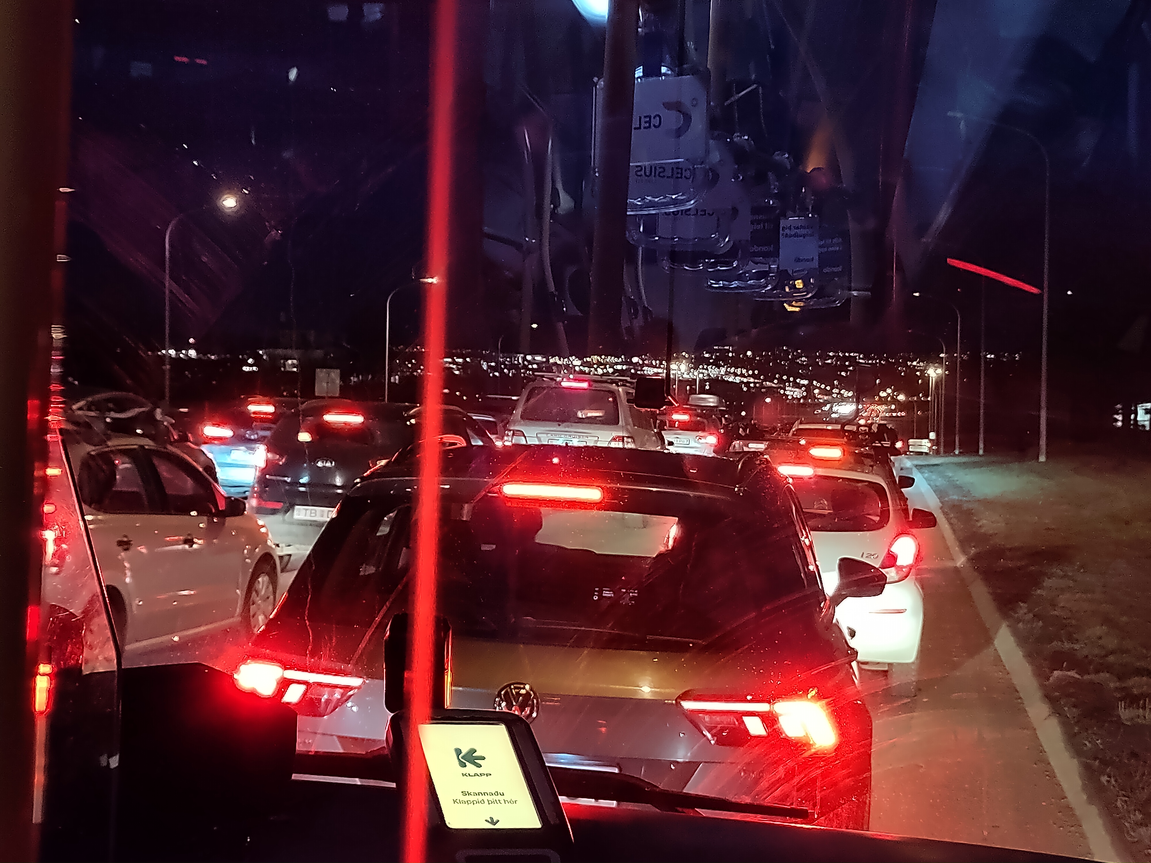 Der Bus von Nationalmuseum Richtung Mjödd steht im Stau…. / Der Bus-Hof Mjödd schliesst abends um 6 – d.h. gerade dann, wenn man ihn brauchen würde – seinen Aufenthaltsraum. Die Alternative ist eine schmuddelige Bank im etwas heruntergekommenen Einkaufszentrum / Auch abends um 6 sind hier nicht viele Menschen zu Fuss unterwegs / Mjödd
